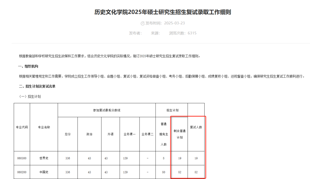 华中师范大学历史文化学院世界史、中国史两个专业均为等额复试。
