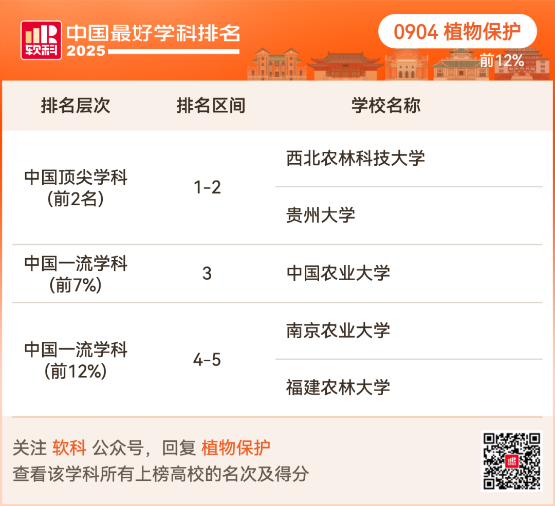 植物保护排名前12%的高校: