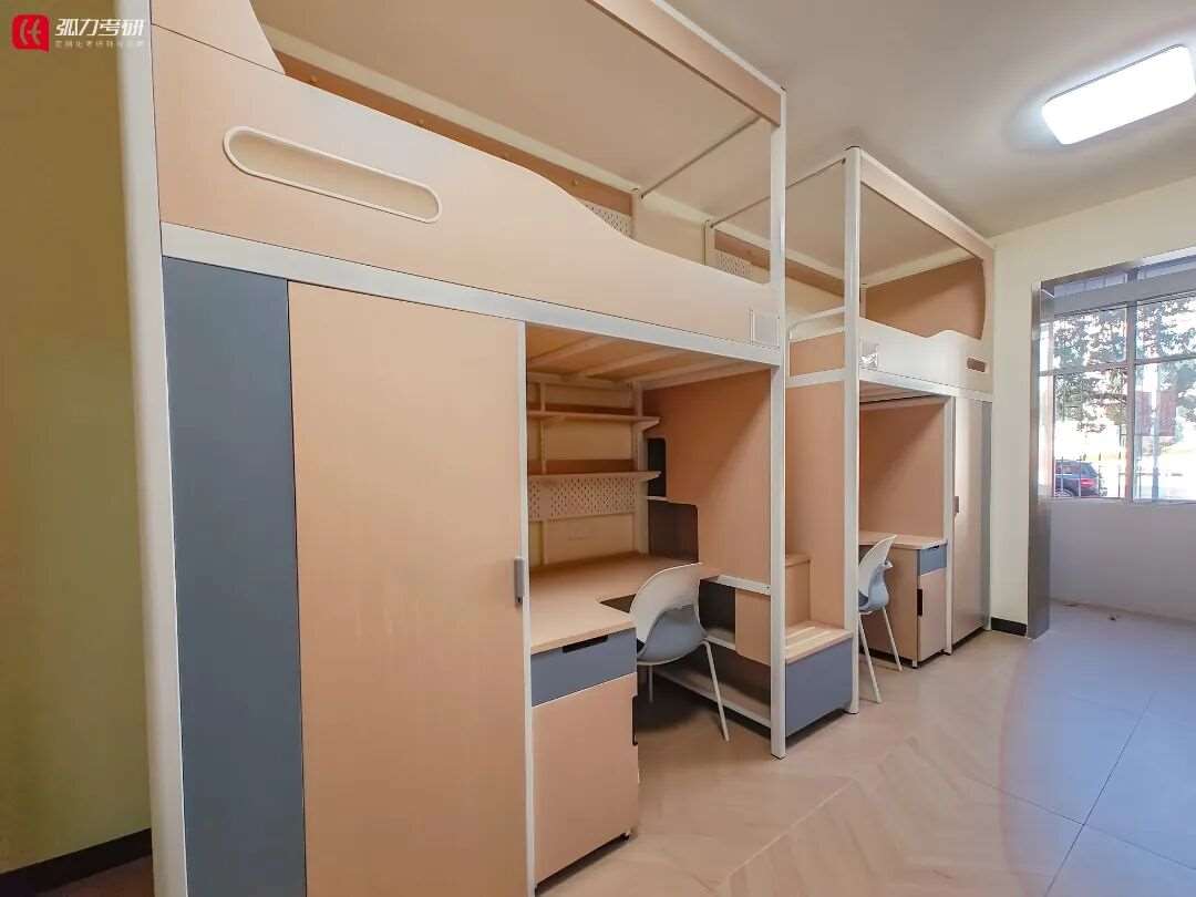 宿舍提供舒适住宿标准,连体床设计,上下床无声。房间内干净整洁,采光充足。