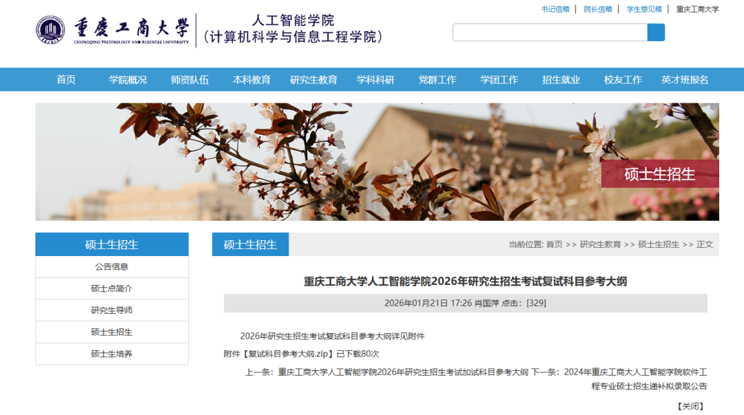 重庆工商大学人工智能学院发布2026年研究生招生考试复试科目参考大纲。